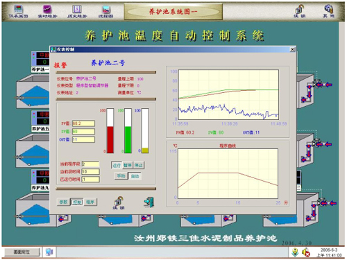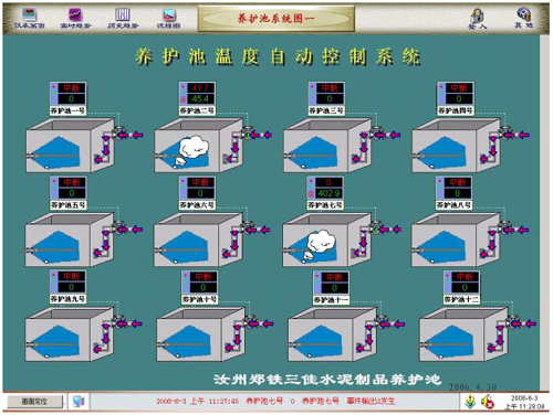 【水泥養(yǎng)護(hù)池1-12】的所有控制信息與數(shù)據(jù)信息都在控制室計算機(jī)上統(tǒng)一管理、分配。在計算機(jī)上對車間溫度進(jìn)行全方位的監(jiān)控,數(shù)據(jù)采集和各項事務(wù)的處理。