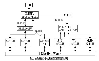 摘要:采用AI智能調(diào)節(jié)器,流量控制器,壓力變送器等,對(duì)小型裝置的溫度,流量,壓力等參數(shù)實(shí)行測(cè)量與控制,效果良好.增加工控機(jī),與AI智能調(diào)解器構(gòu)成小型集散控制系統(tǒng),進(jìn)行分散控制和集中管理,使控制系統(tǒng)的功能更加完善,可靠性更高.