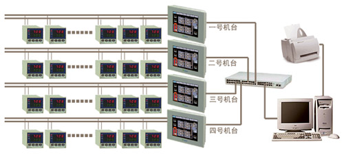 翔鷺滌綸紡纖HDT-3T機臺現(xiàn)場總線型溫控系統(tǒng)采用AIBUS現(xiàn)場總線型總體設(shè)計,以AI-2000工業(yè)級觸摸屏電腦作為上位機,多臺AI調(diào)節(jié)器通過AIBUS通訊協(xié)議現(xiàn)場聯(lián)接,觸摸屏電腦直接與AI調(diào)節(jié)器通過RS-485串行通訊實現(xiàn)90個通道溫度集中監(jiān)控。AI調(diào)節(jié)器上的所有參數(shù)可以在觸摸屏中顯示,也可用觸摸屏電腦設(shè)定下載,數(shù)據(jù)顯示刷新率高,便于實時監(jiān)控,溫度控制在±0.1℃。本系統(tǒng)同時監(jiān)控四條拉絲生產(chǎn)線。