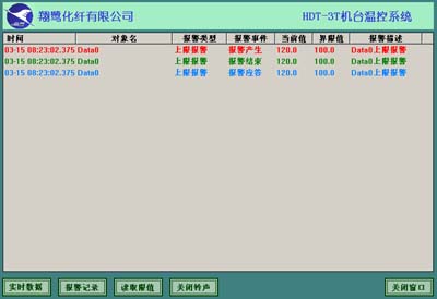 系統(tǒng)按照客戶的要求設(shè)置好報警產(chǎn)生時間、形式、長短和解除方式,實時快速準確的進行報警。并保存每一次報警的報警類型、報警時間、應(yīng)答時間、結(jié)束時間、報警時報警后的實時數(shù)據(jù)、操作人員等,客戶需要的信息,對報警數(shù)據(jù)的查詢更可方便客戶進行事故分析。