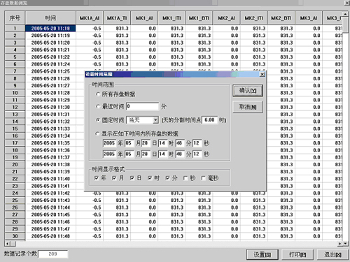 ㈡“報(bào)表查詢”軟件數(shù)據(jù)庫(kù)記錄間隔為1分鐘,可記錄1年的數(shù)據(jù)。分5張報(bào)表,數(shù)據(jù)報(bào)表A、數(shù)據(jù)報(bào)表B、數(shù)據(jù)報(bào)表C、數(shù)據(jù)報(bào)表D和報(bào)警表報(bào)。(數(shù)據(jù)可按時(shí)間查詢)如下: