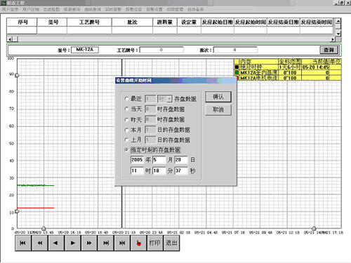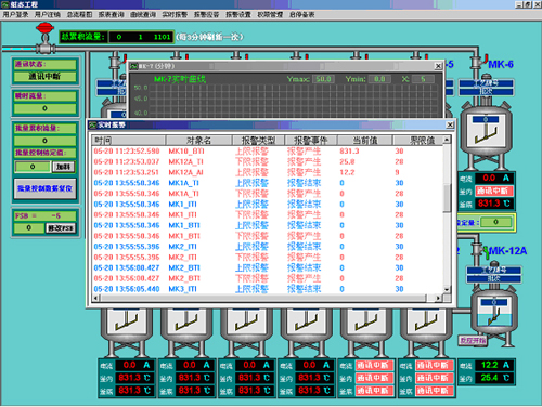 生產(chǎn)過程及物料狀態(tài)可完全由計(jì)算機(jī)生成實(shí)時(shí)曲線和報(bào)表進(jìn)行監(jiān)測(cè)和控制,所有相關(guān)歷史數(shù)據(jù)都用ACCESS數(shù)據(jù)庫(kù)進(jìn)行保存,有完善的歷史報(bào)表、曲線以便日后查詢。