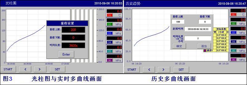 實時、歷史組合多趨勢曲線在【實時曲線】【歷史曲線】按通道順序排列1、2、3、4、6固定組合在一起,直觀的顯示相關(guān)通道間的變化關(guān)系。點(diǎn)擊【數(shù)據(jù)框】返回【實時畫面】通道。在【歷史曲線】畫面點(diǎn)擊【S】可選擇啟用單條或4條曲線,顯示趨勢變化;設(shè)置查詢起始時間及時間跨度;不同的數(shù)據(jù)量程范圍啟用單條查詢。通過【上一頁】,【下一頁】的切換組合通道。