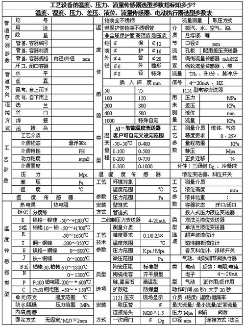 如選擇溫度傳感器時,先要了解設(shè)備管道的結(jié)構(gòu),要考慮插入深度與物料的高度、流向、壓力、溫度范圍及要求反應(yīng)的速度。